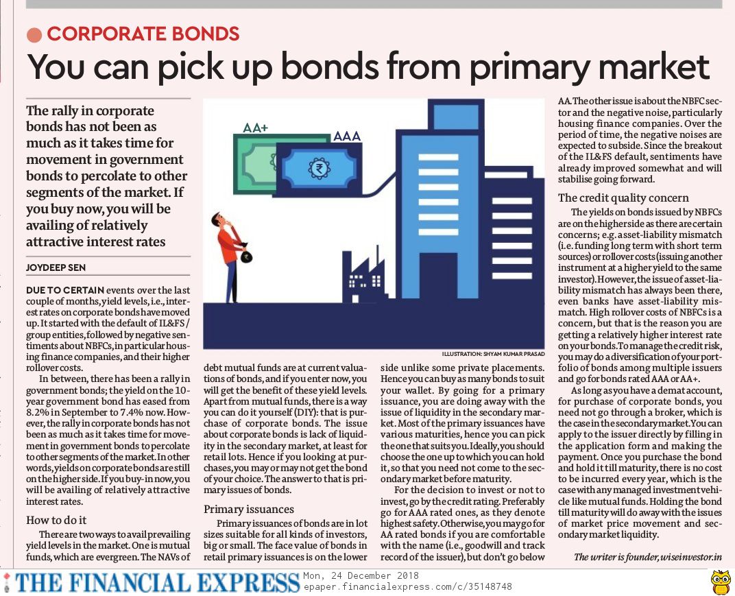 If you choose to buy an individual bond, you need to look at its credit quality. Bonds with high ratings such as AAA are the best ones unless you are buying a Government of India security. The drawback is that you are betting on one company or one security, however good its current condition is.